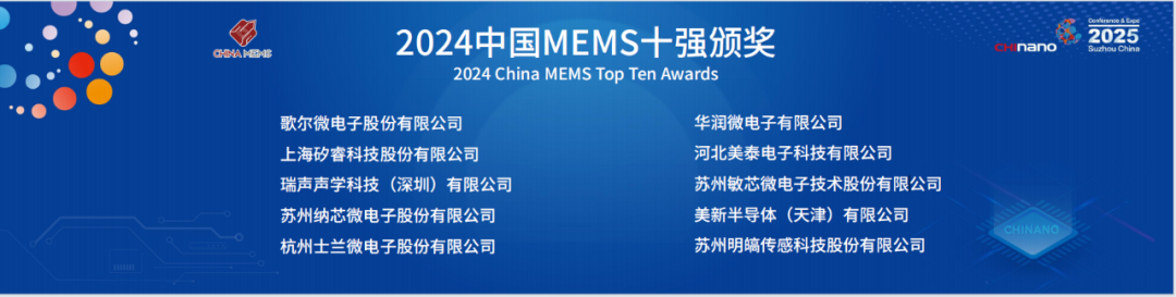 近日,China MEMS 2025第六届中国MEMS制造大会暨微纳制造与传感器展览会在苏州国际博览中心举行。在“中国MEMS十强”颁奖环节,无锡高新区企业华润微电子有限公司再度登榜,用硬核实力诠释了中国MEMS领军者的标杆力量。