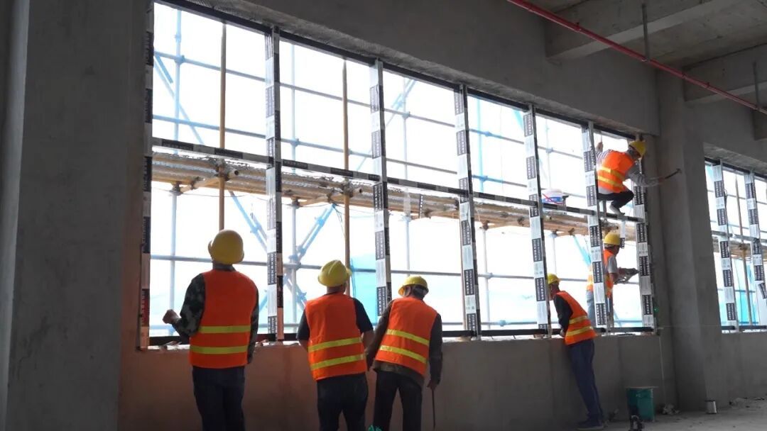 “目前,项目进行到建筑内部施工装修以及外立面粉刷阶段,预计11月月底完成。下阶段将进入脚手架落架,玻璃幕墙安装,以及总平绿化景观施工。整个项目预计明年2月交付。”新建高速数据及射频同轴电缆组件及电缆生产线项目经理林位洞表示。