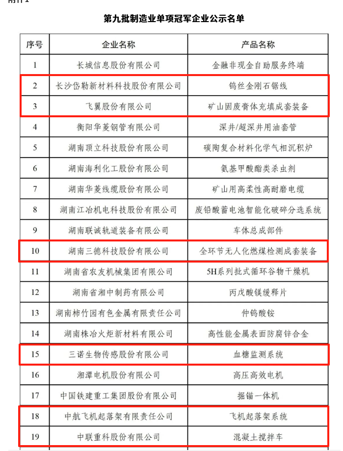 近日,工业和信息化部第九批制造业单项冠军企业名单完成公示,湖南省22家企业榜上有名,长沙占据10席,中联重科、岱勒新材、三诺生物等6家湖南湘江新区企业(含统筹区)携代表产品上榜。