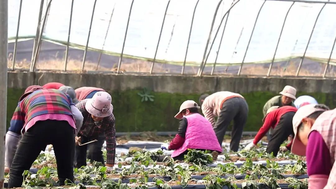 在合作社育苗暖棚内,工人们正加紧扦插“普薯32”地瓜种苗。这批试管种苗是今年11月初种植,预计45天后可陆续剪苗销售。