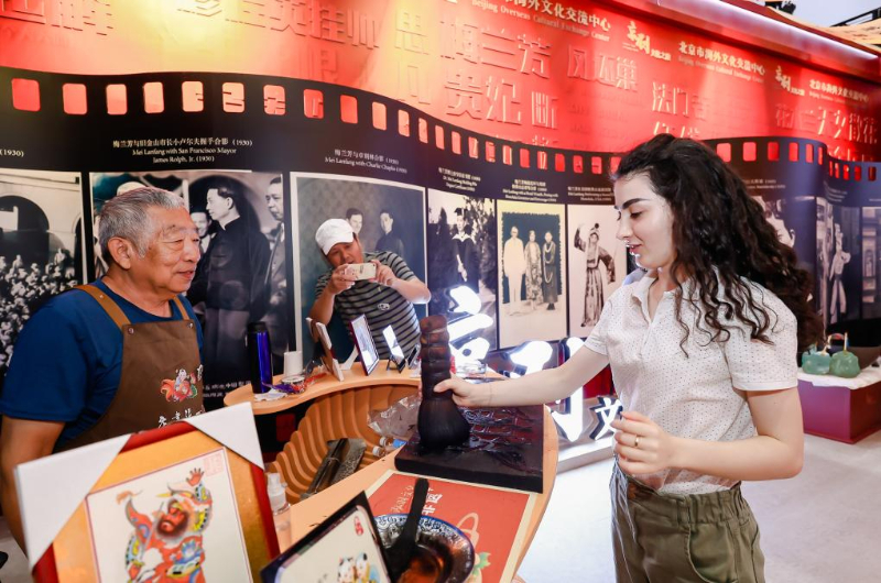 非遗体验区是一处特别为观众设计的互动空间。在这里,观众可以亲身体验杨柳青年画、彩塑京剧脸谱、金漆镶嵌、北京皮影、绒鸟(绒花)、折纸、面部化妆等传统非遗技艺。