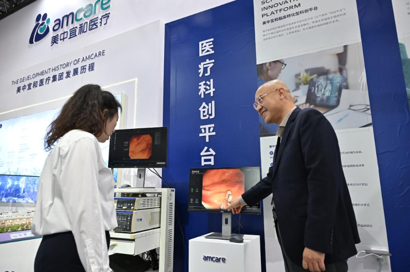 9月13日,参观者在服贸会首钢ios版怎么下载taptap了解一款AI胃肠镜医疗平台。新华社记者李鑫 摄