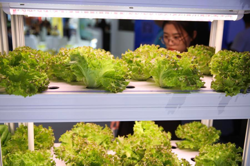 9月13日,观众在一轻科技展台观看“智能家庭种植机”。新华社记者 邹广萍 摄