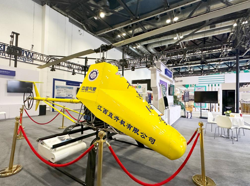 图为第四届全球气象服务与装备展上展出的气象型无人直升机。新华社记者 田晨旭 摄
