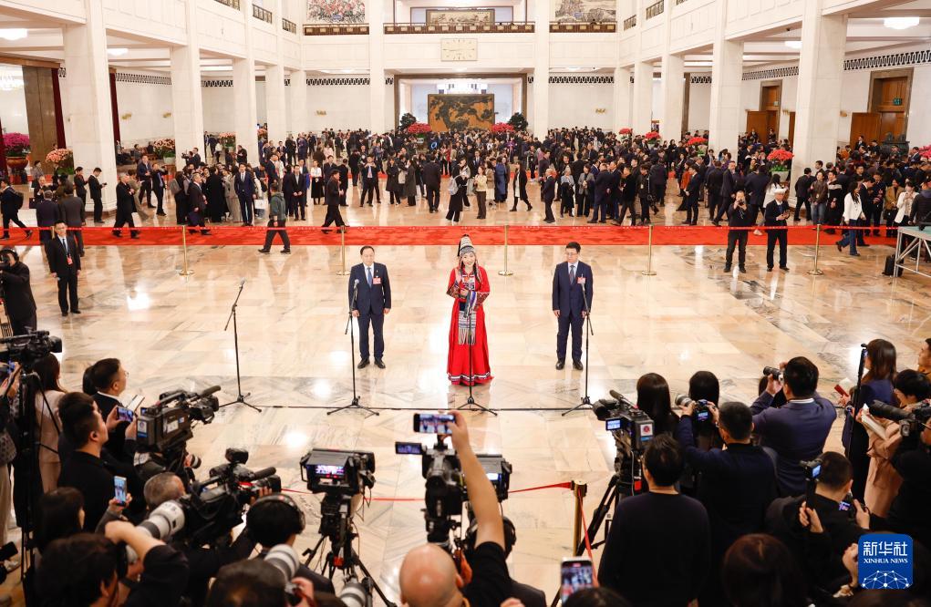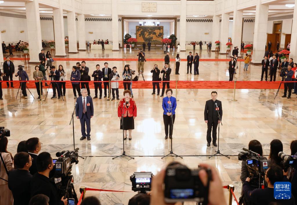 3月7日,全国政协十四届三次会议第二场“委员通道”集体采访活动在北京人民大会堂举行。