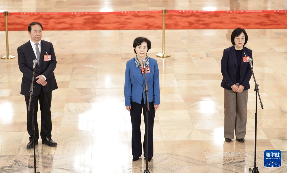 3月7日,全国政协十四届三次会议第二场“委员通道”集体采访活动在北京人民大会堂举行。这是全国政协委员徐晓兰接受媒体采访。