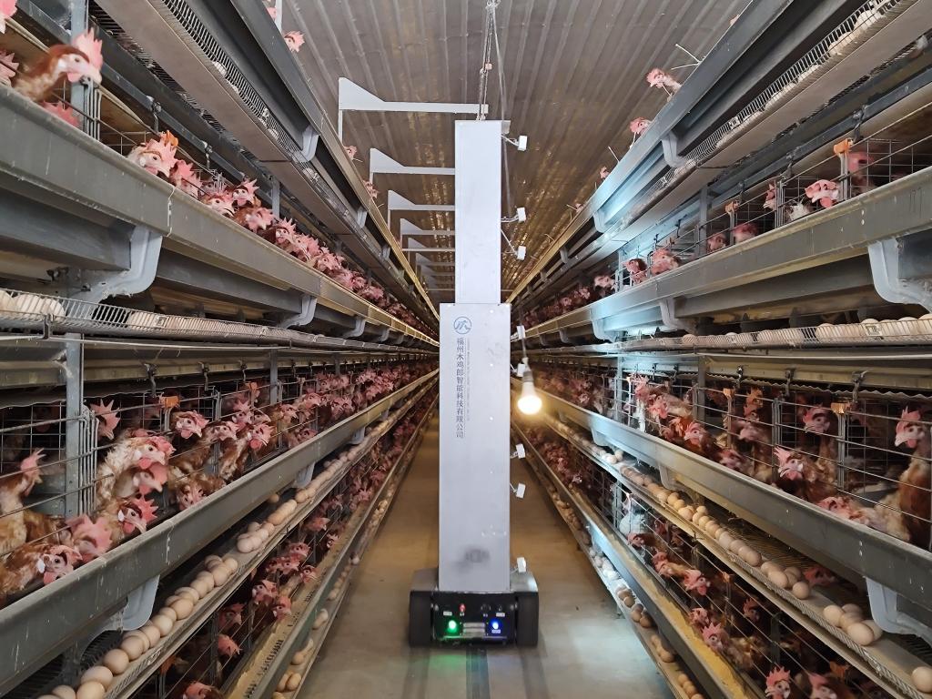 “木鸡郎”机器人在巡视鸡舍。新华社发