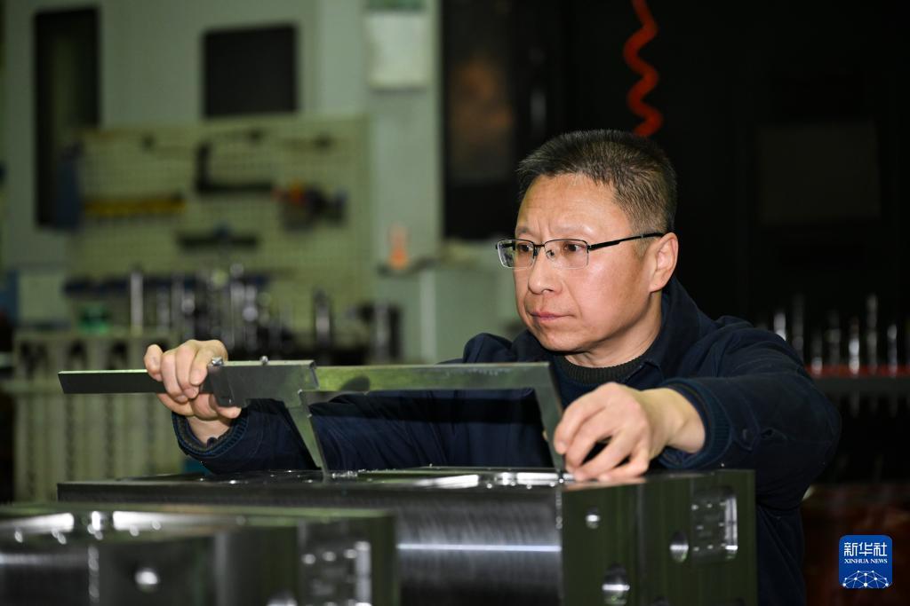 全国人大代表、重庆红江机械有限责任公司加工中心特级技师傅国涛在重庆红江机械有限责任公司机械加工车间工作(2025年2月11日摄)。
