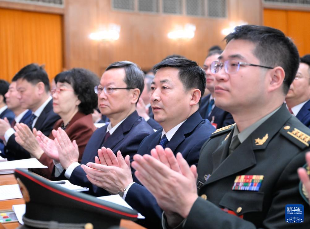 3月5日,全国人大代表、中石化第四建设有限公司工匠学院焊接教练张振连(右二)在北京人民大会堂出席十四届全国人大三次会议开幕会。