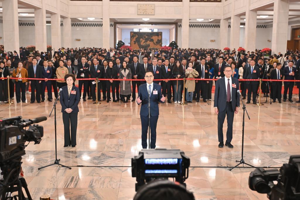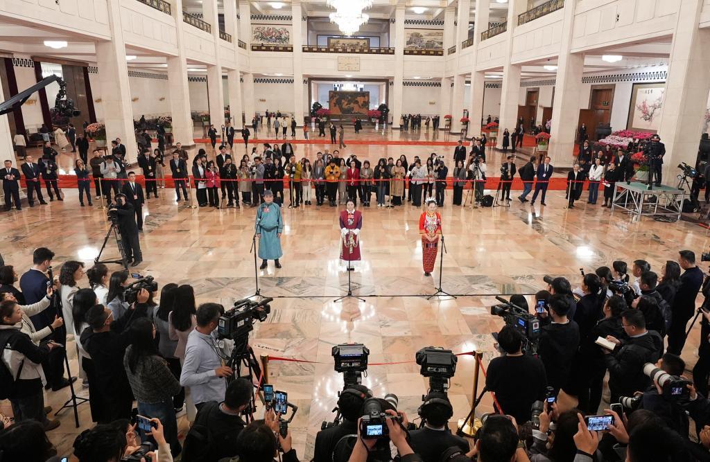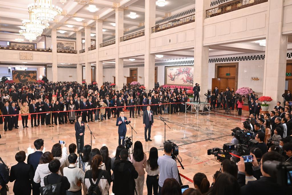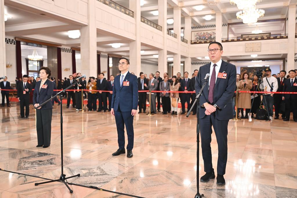 3月10日,全国政协十四届三次会议第三场“委员通道”集体采访活动在北京人民大会堂举行。