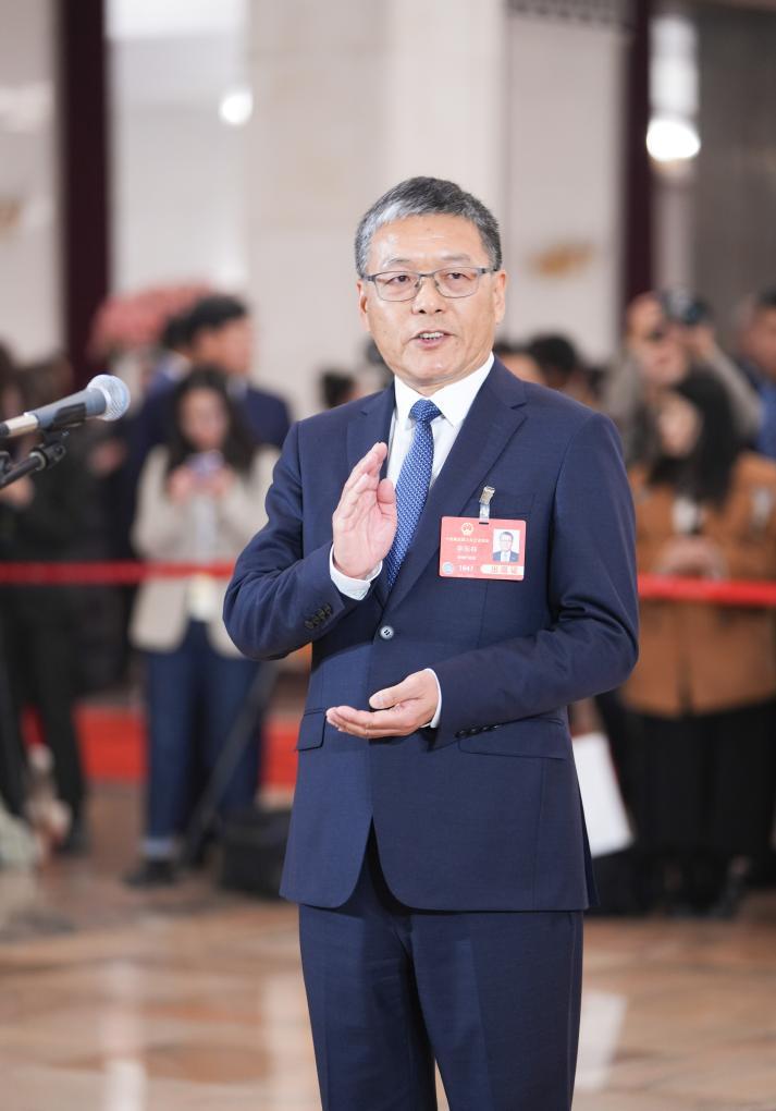 3月11日,第十四届全国人民代表大会第三次会议第三场“代表通道”集中采访活动在北京人民大会堂举行。这是全国人大代表赵昭接受媒体采访。