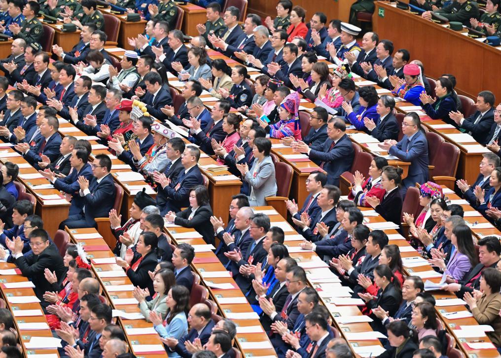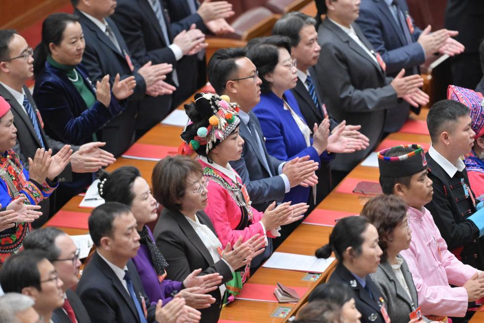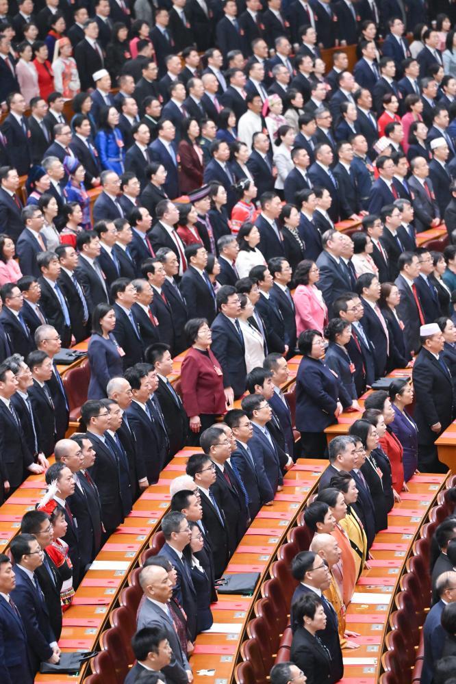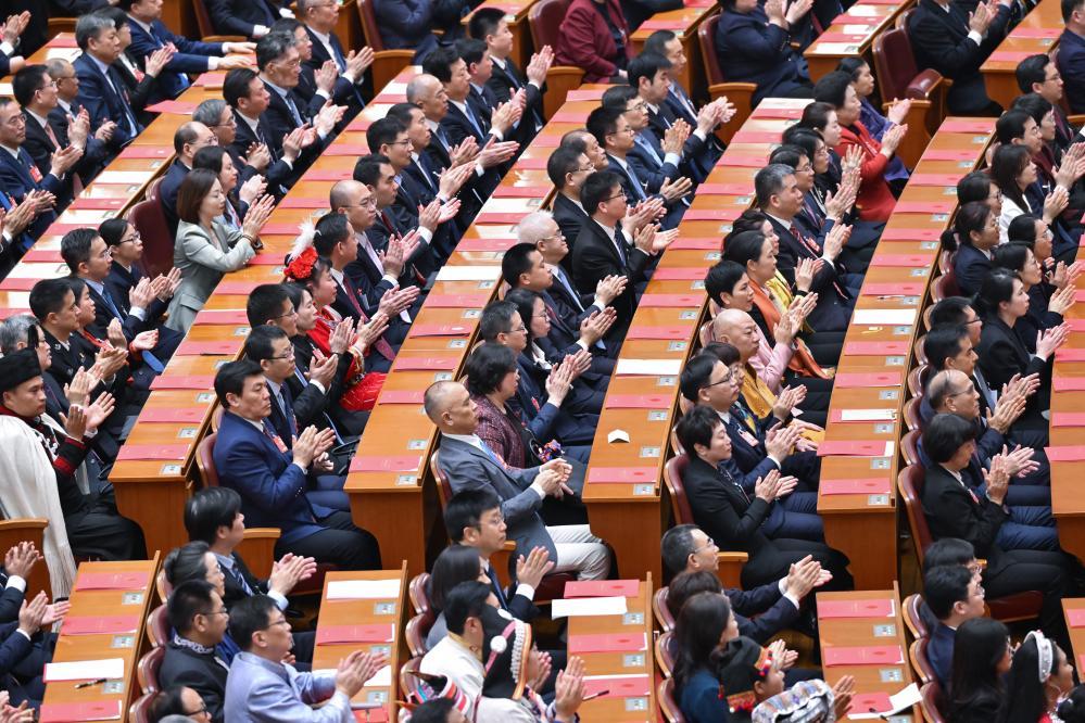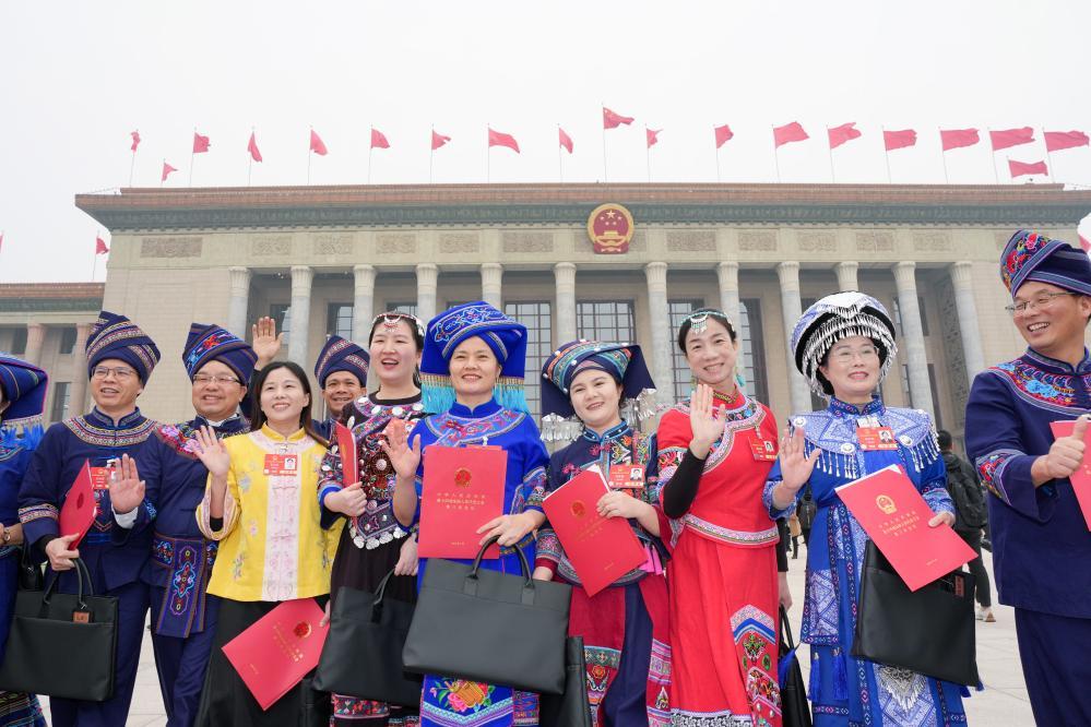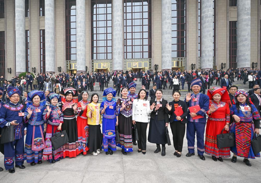 3月11日,十四届全国人大三次会议在北京人民大会堂举行闭幕会。这是代表们在合影。