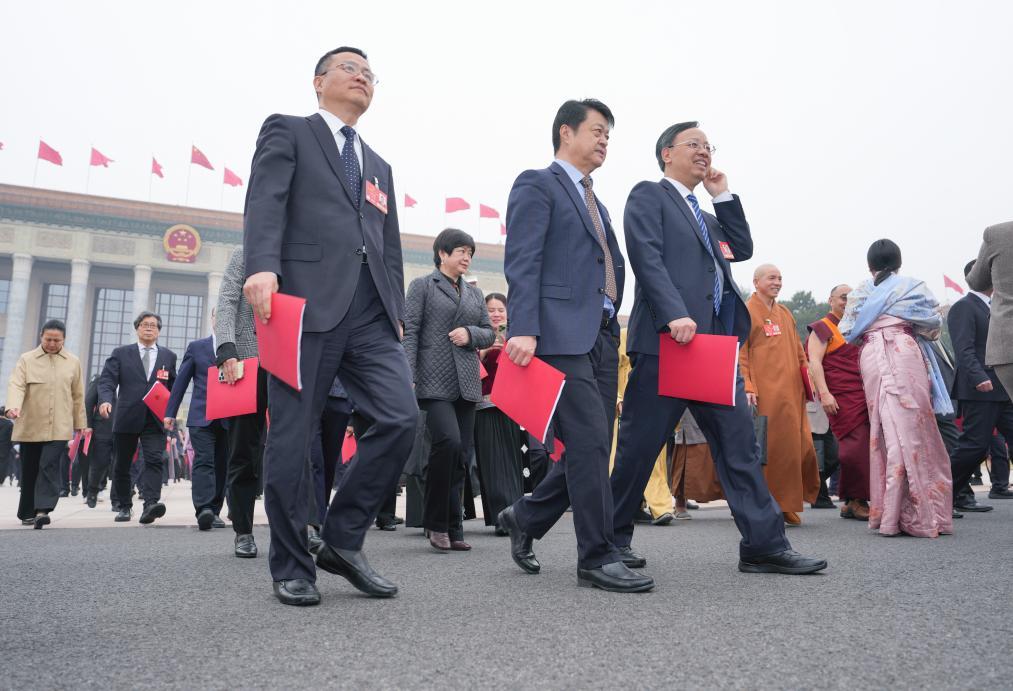 3月11日,十四届全国人大三次会议在北京人民大会堂举行闭幕会。这是闭幕会后,代表们走出会场。